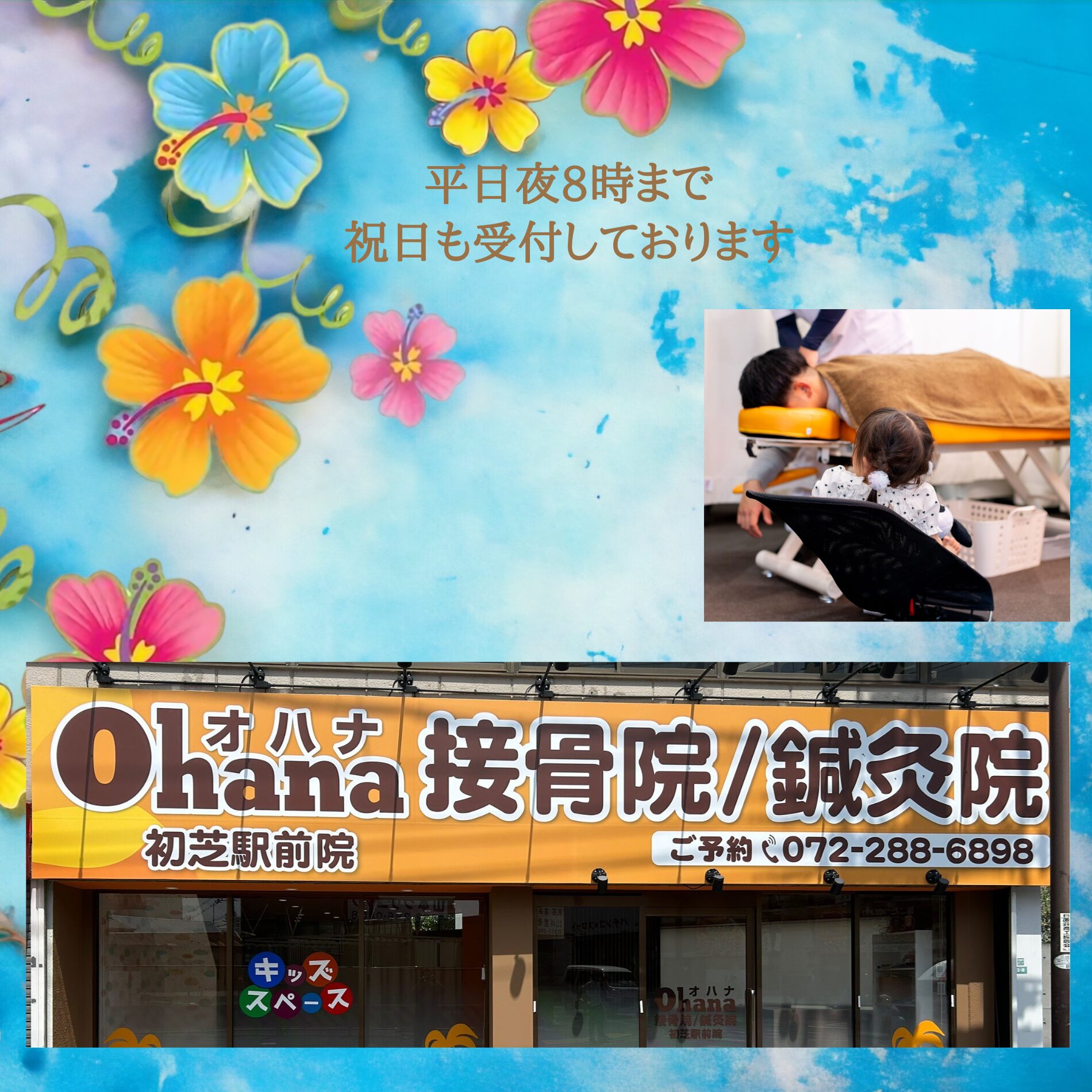 Ohana接骨院/鍼灸院はご予約優先制です。必ずしもご予約を必要としませんが、お待たせしないためにもご予約をおとりいただくことをおすすめします。初めての方もお電話または、直接来院してご予約いただきますようお願い申し上げます。